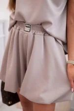Ten komplet damski to idealna propozycja na cieplejsze dni – stylowy, wygodny i wykonany z miękkiego materiału, który doskonale układa się na sylwetce. Składa się z bluzki bez rękawów o prostym fasonie oraz szortów z szeroką nogawką i elastycznym pasem, które zapewniają pełną swobodę ruchów. Komplet świetnie sprawdzi się zarówno na co dzień, jak i podczas urlopu czy spacerów po mieście. Naturalna kolorystyka ułatwia dopasowanie dodatków, a klasyczny krój gwarantuje ponadczasowy wygląd. Wysoka zawartość wiskozy i dodatku elastanu zapewnia komfort noszenia przez cały dzień.