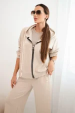 Szukasz wygodnego, a jednocześnie modnego zestawu na co dzień? Ten komplet dresowy damski to idealne połączenie komfortu i stylu. Składa się z miękkiej bluzy zapinanej na zamek oraz luźnych spodni z szeroką nogawką, które świetnie układają się na sylwetce i zapewniają swobodę ruchów. Całość utrzymana jest w minimalistycznym stylu, który sprawdzi się zarówno w domu, na spacerze, jak i podczas weekendowych wypadów.