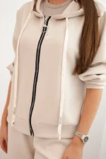 Fason: luźna bluza z zamkiem, spodnie z szeroką nogawką
