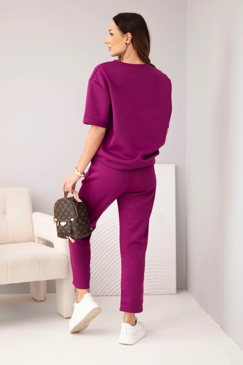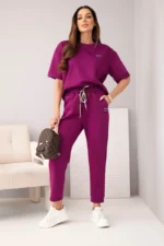 Komplet damski wiskozowy masełko z krótkim rękawem i spodniami z podwijaną nogawką ciemny fioletowy