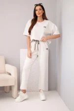 Stylowy komplet damski to doskonała propozycja dla kobiet, które cenią wygodę oraz modny, minimalistyczny styl. Zestaw składa się z luźnej bluzki z krótkim rękawem oraz komfortowych spodni z elastycznym pasem. To idealny komplet damski na co dzień – sprawdzi się zarówno podczas spaceru, zakupów, jak i w domowym zaciszu.