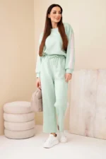 Komplet damski wiskozowy masełko z lampasami ciemny miętowy