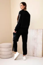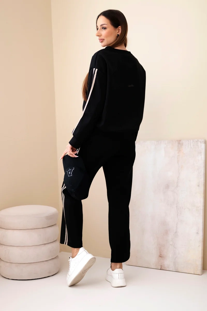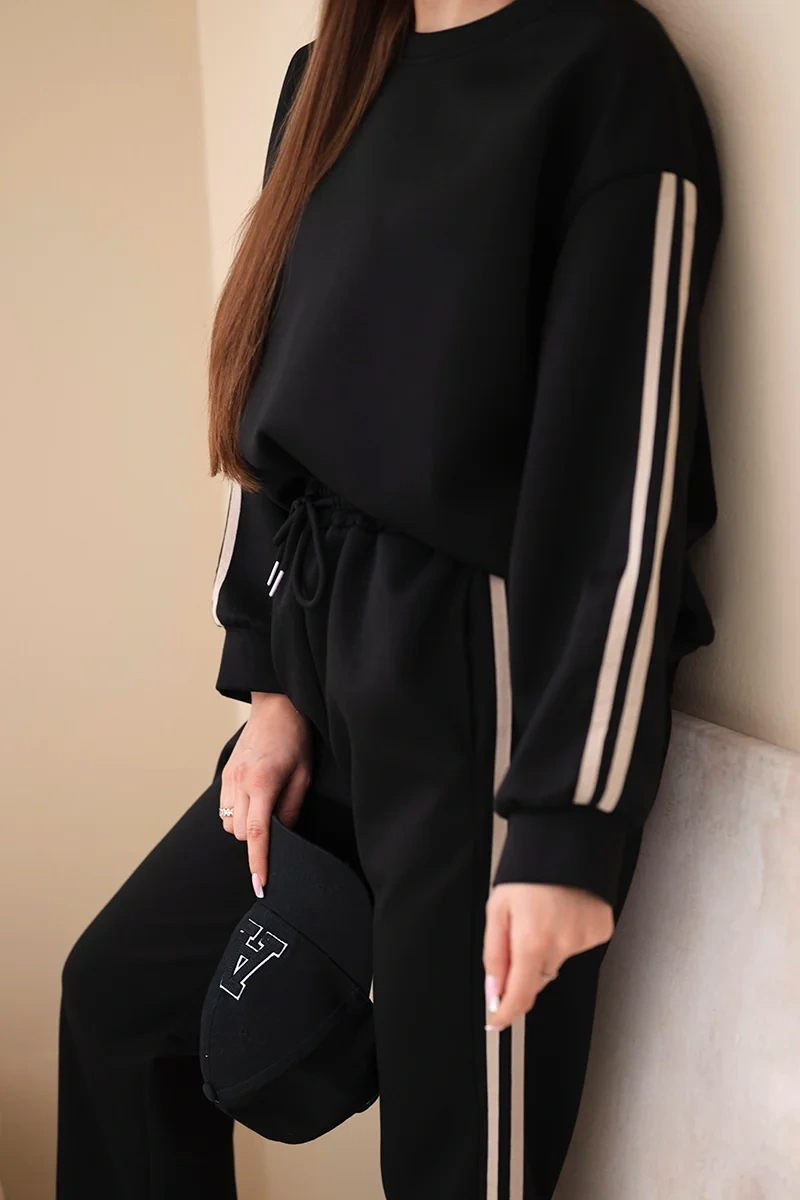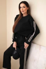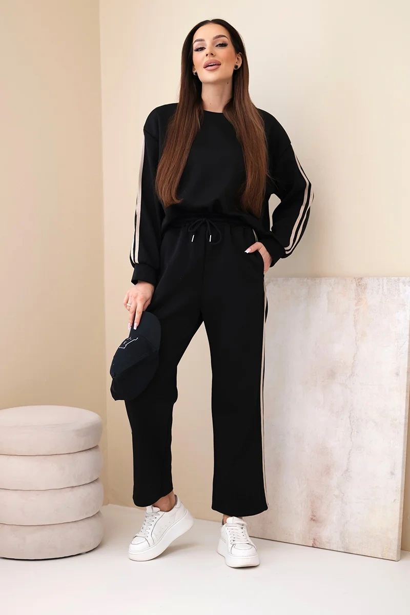 Komplet damski wiskozowy masełko z lampasami czarny