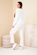 Materiał z wysoką zawartością wiskozy jest miękki, przyjemny w dotyku i przewiewny, a dodatek elastanu sprawia, że tkanina delikatnie się rozciąga i dopasowuje do ciała. To komplet damski, który łączy w sobie wygodę, styl i funkcjonalność.