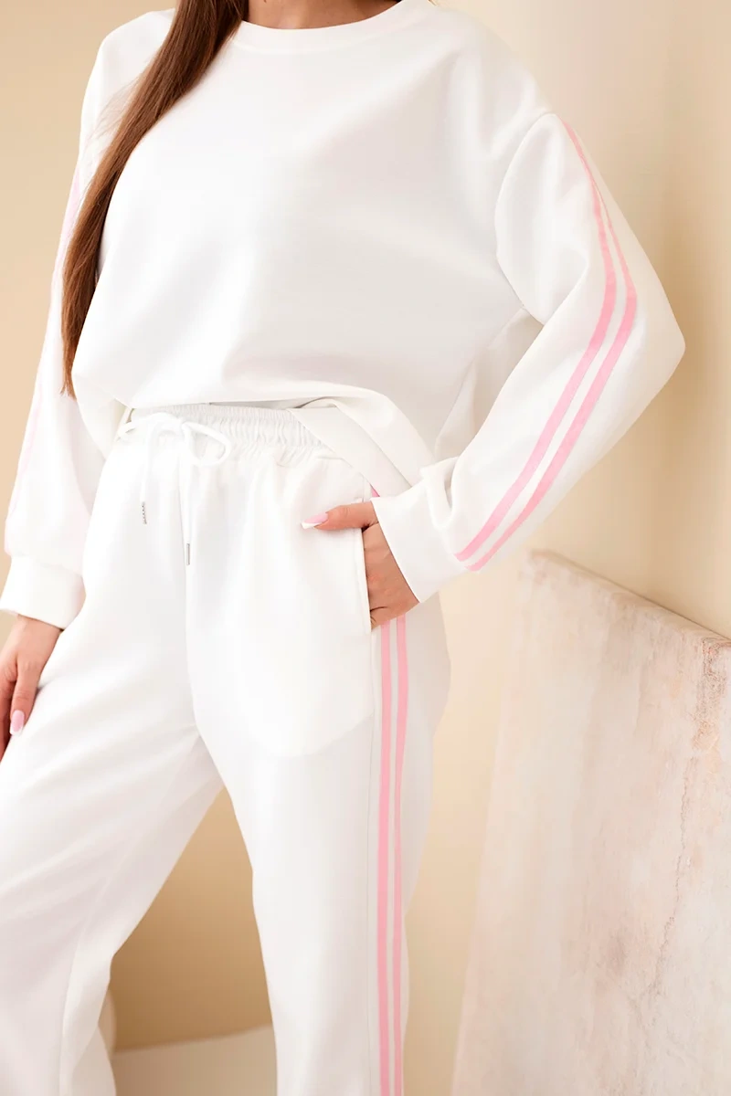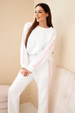 Stylowy komplet damski dresowy to idealna propozycja dla kobiet, które cenią wygodę i modny wygląd w codziennych stylizacjach. Zestaw składa się z luźnej bluzy z długim rękawem oraz spodni z elastycznym pasem i efektownymi lampasami po bokach. To doskonały wybór zarówno na co dzień, do pracy w swobodnym stylu, jak i na spacer czy wyjazd.