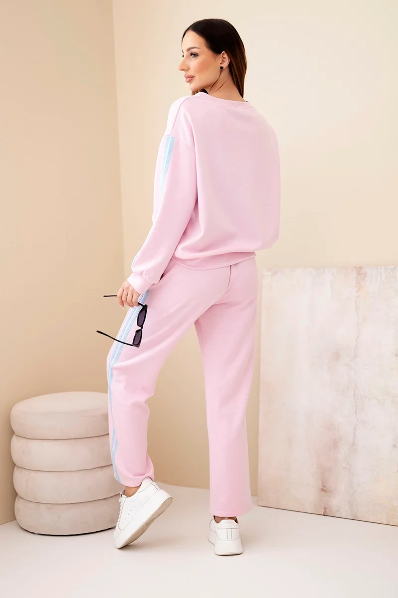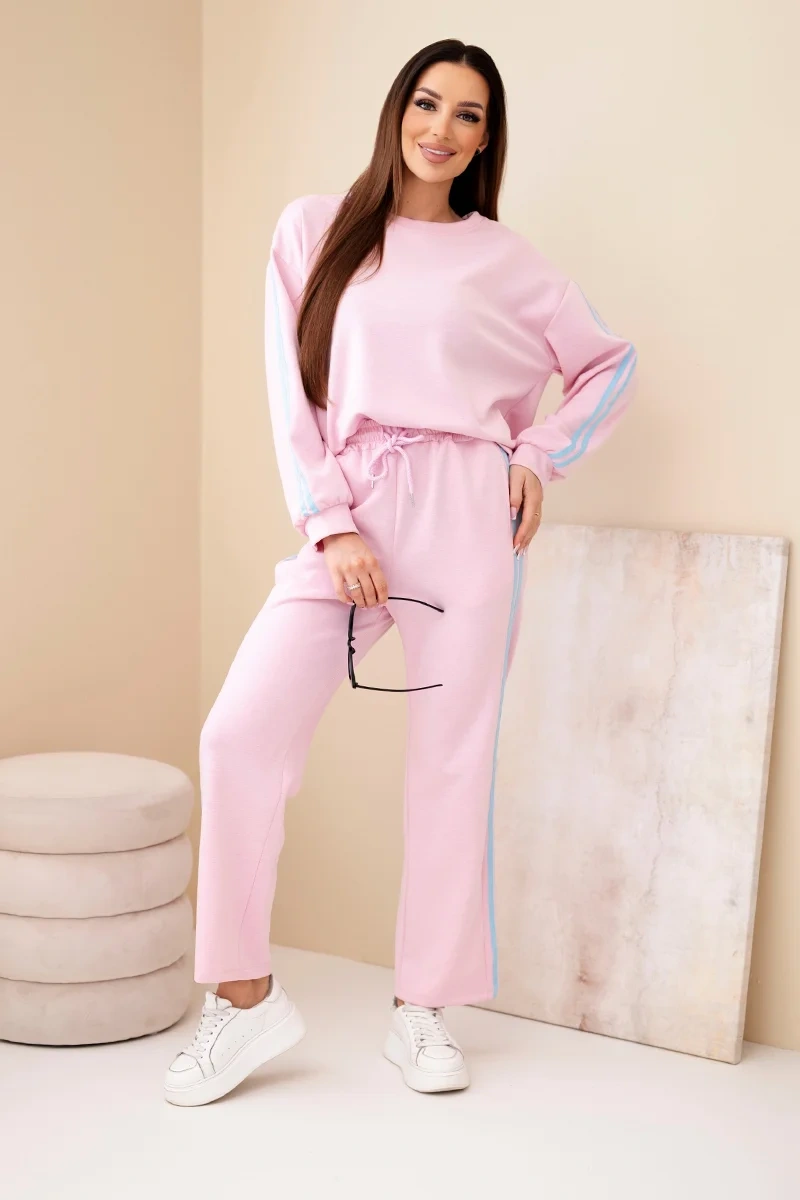 Komplet damski wiskozowy masełko z lampasami pudrowy róż