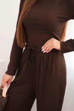 Komplet damski wiskozowy z bluzką i szerokimi spodniami brązowy