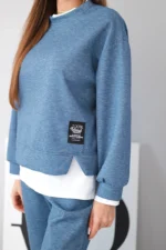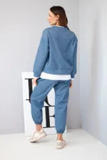Komplet damski z masełkowy z luźną bluzą i spodniami dresowymi jeansowy melanż