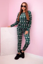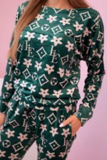 Komplet damski z weluru w monogram zielony + beżowy