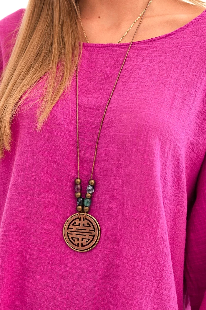 - Bluzka z rękawem 3/4, ozdobiona naszyjnikiem na sznurku