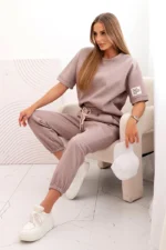 Komplet damski z wiskozy masełko z krótkim rękawem i spodniami beżowy melanż