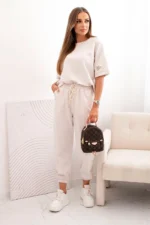 Komplet damski z wiskozy masełko z krótkim rękawem i spodniami beżowy