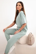 - Fason: luźna bluzka z krótkim rękawem + długie spodnie z gumką