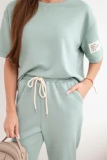 Szukasz wygodnego, a zarazem stylowego zestawu na co dzień? Komplet dresowy damski z krótkim rękawem i elastycznymi spodniami to idealny wybór na każdą porę roku. Dzięki uniwersalnemu krojowi i przyjemnemu w dotyku materiałowi, zestaw świetnie sprawdzi się zarówno w domowym zaciszu, jak i podczas aktywności na świeżym powietrzu. Minimalistyczny fason sprawia, że możesz go łatwo zestawić z ulubionymi sneakersami czy kurtką jeansową. Bluzka z krótkim rękawem i luźnym krojem zapewnia swobodę ruchów, a spodnie z elastycznym pasem i ściągaczami gwarantują wygodę przez cały dzień. Idealny komplet na spacery, relaks w domu, czy szybkie wyjście na miasto. Produkcja Włoska zapewnia wysoką jakość wykonania i modny wygląd. Rozmiar jest uniwersalny i będzie odpowiedni dla Pań w rozmiarze S, M lub L.