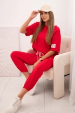 Komplet damski z wiskozy masełko z krótkim rękawem i spodniami czerwony