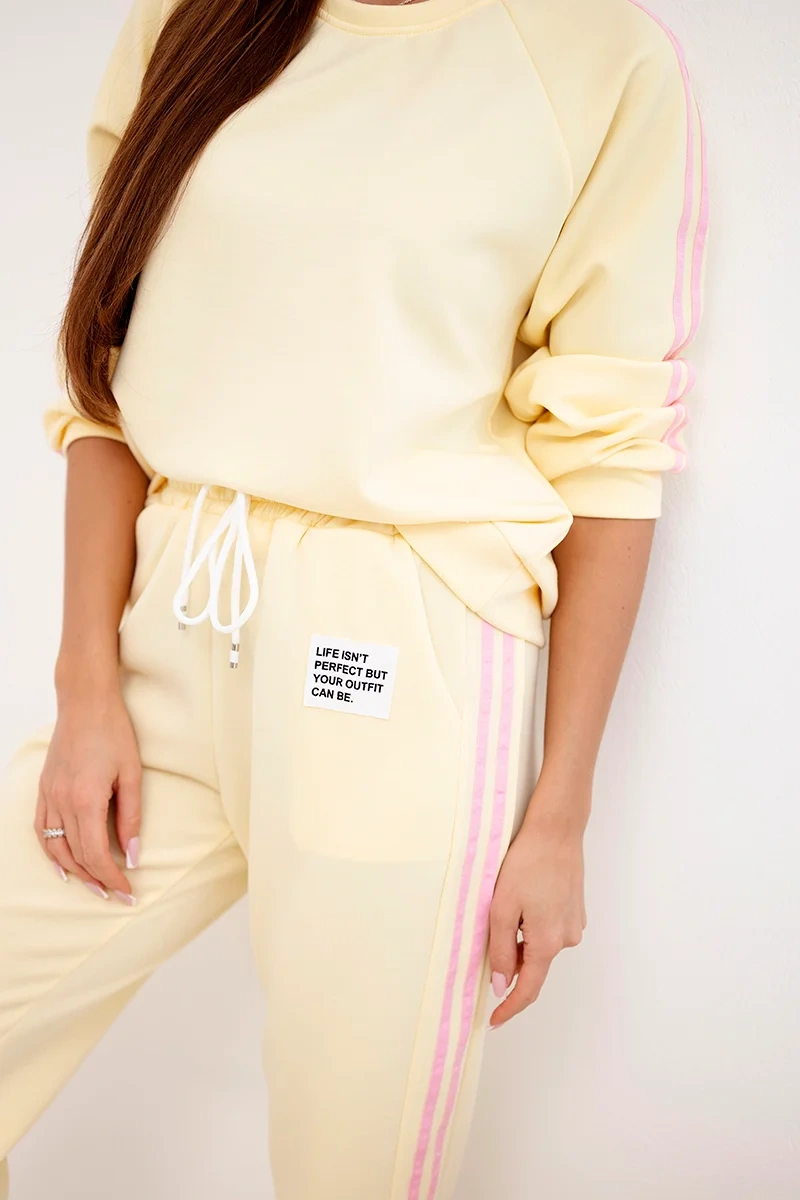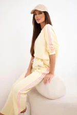Komplet dresowy damski Masełko z lampasami i luźną bluzą żółty