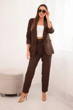 Komplet elegancki marynarki ze spodniami brązowy