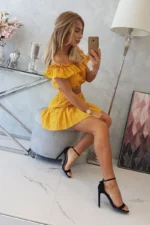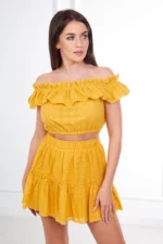 Komplet haftowany z bluzką hiszpanką musztardowy