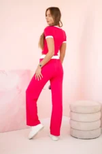Stylowy komplet prążkowany to doskonała propozycja dla kobiet, które cenią sobie połączenie wygody i elegancji. Wykonany z elastycznego, miękkiego materiału o prążkowanej fakturze, zapewnia idealne dopasowanie do sylwetki i maksymalny komfort noszenia. Bluzka o klasycznym, lekko dopasowanym kroju podkreśla figurę, a spodnie z szeroką nogawką dodają całości nowoczesnego, modnego charakteru. Luźny fason spodni optycznie wydłuża nogi, nadając sylwetce lekkości i elegancji. Dzięki uniwersalnemu designowi komplet świetnie sprawdzi się na co dzień, do pracy, a także na bardziej eleganckie okazje. Możesz nosić go zarówno ze sportowym obuwiem, jak i szpilkami, tworząc różnorodne stylizacje dostosowane do Twojego stylu. Wybierz komplet prążkowany z bluzką i spodniami o szerokiej nogawce, by cieszyć się modnym, wygodnym i ponadczasowym lookiem. Rozmiar jest uniwersalny i będzie odpowiedni dla Pań w rozmiarze S, M lub L.
