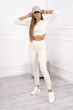Prezentujemy Państwu komplet bluzki z legginsami. Bluzka oraz legginsy wykonane są z prążkowanego materiału. Komplet wykonany jest z wysokiej jakości materiału. Rozmiar jest uniwersalny i będzie odpowiedni dla Pań w rozmiarze XS, S.