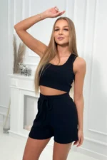 Komplet prążkowany z szortami czarny