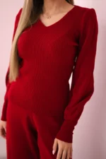 Prezentujemy Państwu modny komplet. Komplet składa się bluzki oraz spodni. Spodnie posiadają szeroką nogawkę, bluzka prążkowana. Komplet wykonany jest z wysokiej jakości materiału. Rozmiar jest uniwersalny i będzie odpowiedni dla Pań w rozmiarze S, M, L.