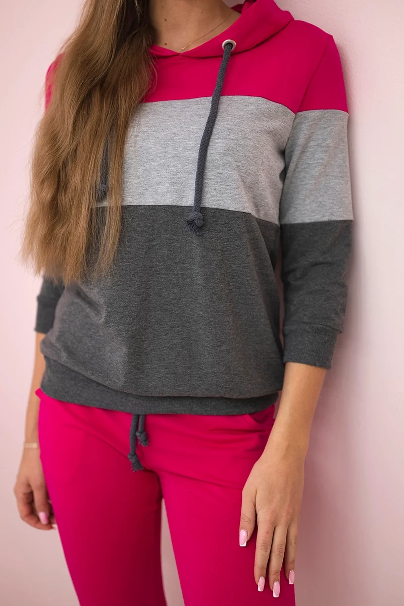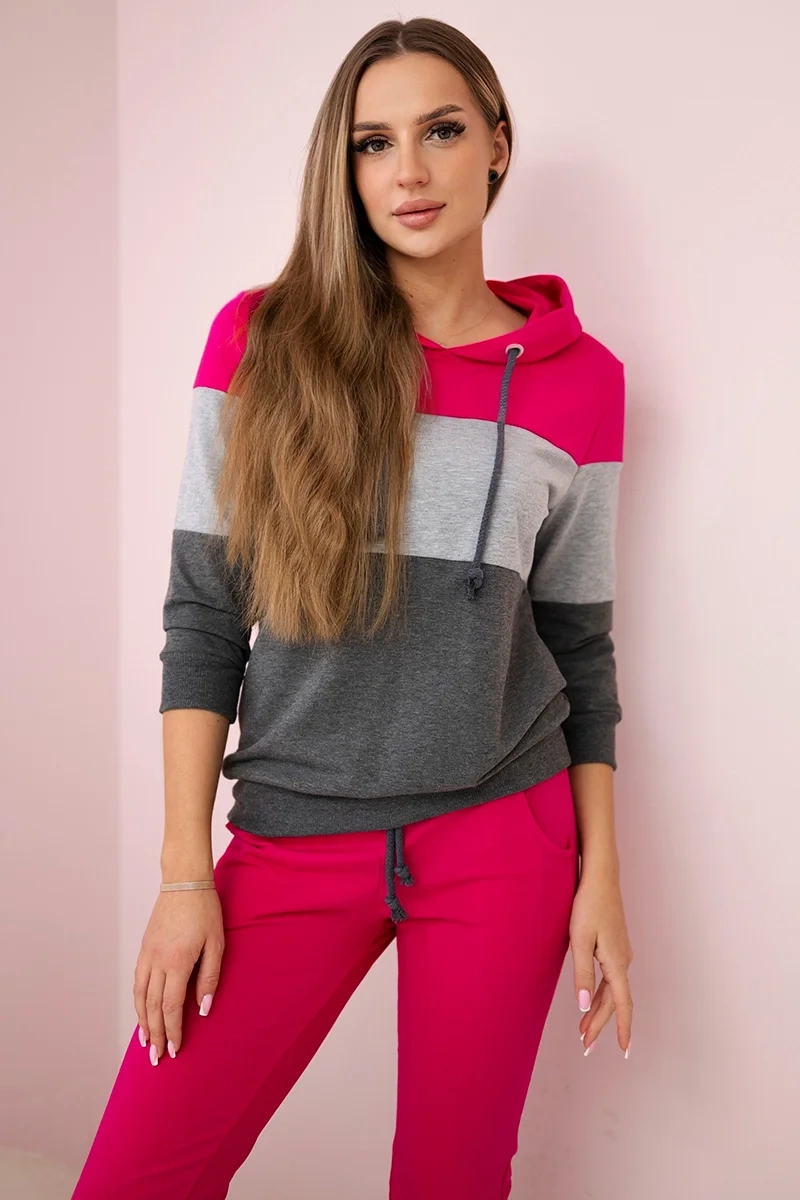 Prezentujemy Państwu komplet bluzy i spodni w kolorowe pasy. Komplet wykonany jest z wysokiej jakości materiału. Rozmiar jest uniwersalny i będzie odpowiedni dla Pań w rozmiarze S, M lub L.