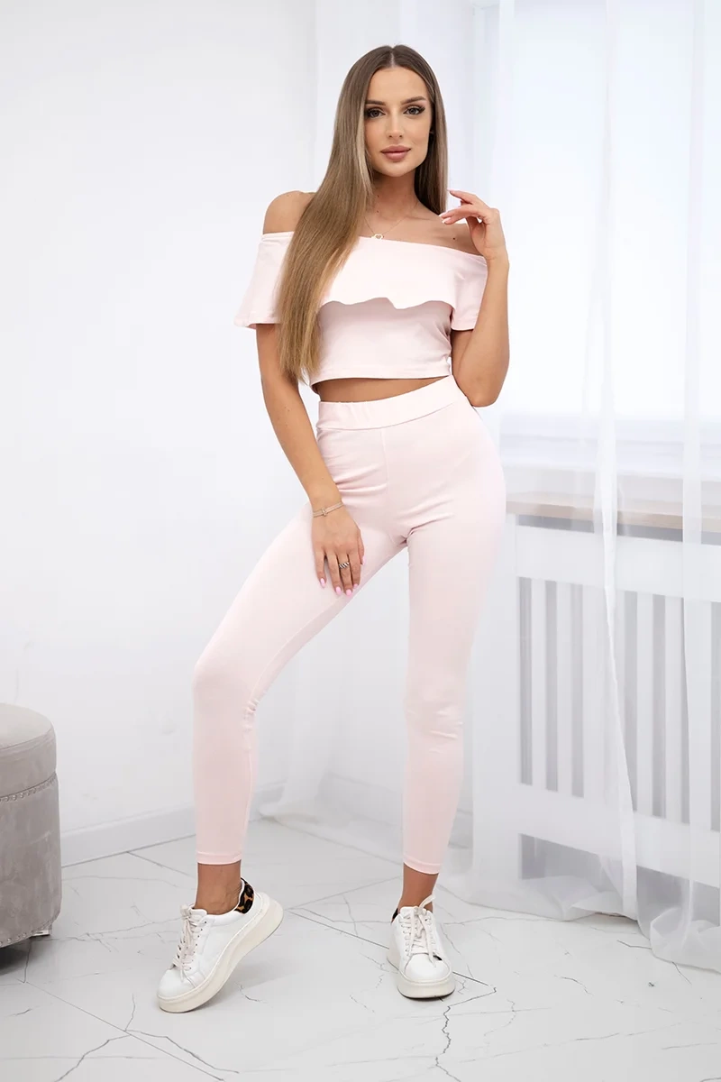 Komplet z falbanką pudrowy róż