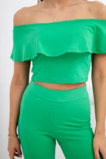 Prezentujemy Państwu komplet bluzki z falbanką i spodni.