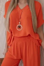 Komplet z naszyjnikiem bluzka + spodnie ciemny pomarańczowy