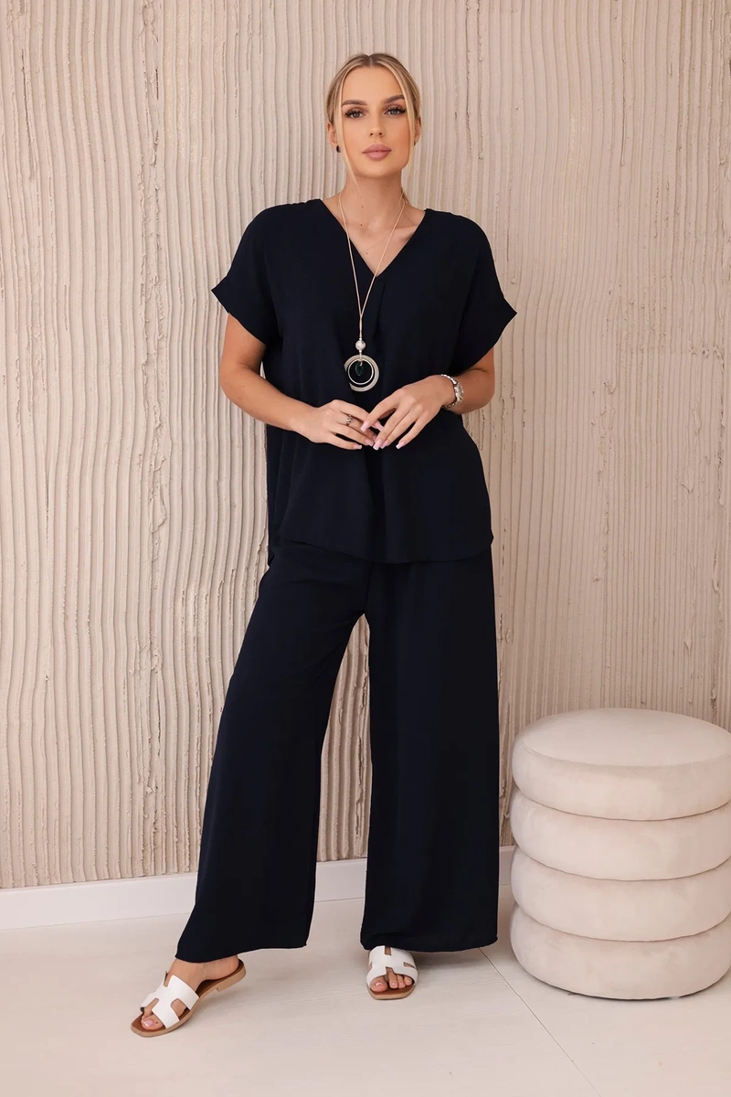 Komplet z naszyjnikiem bluzka + spodnie granatowy