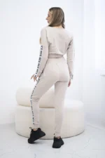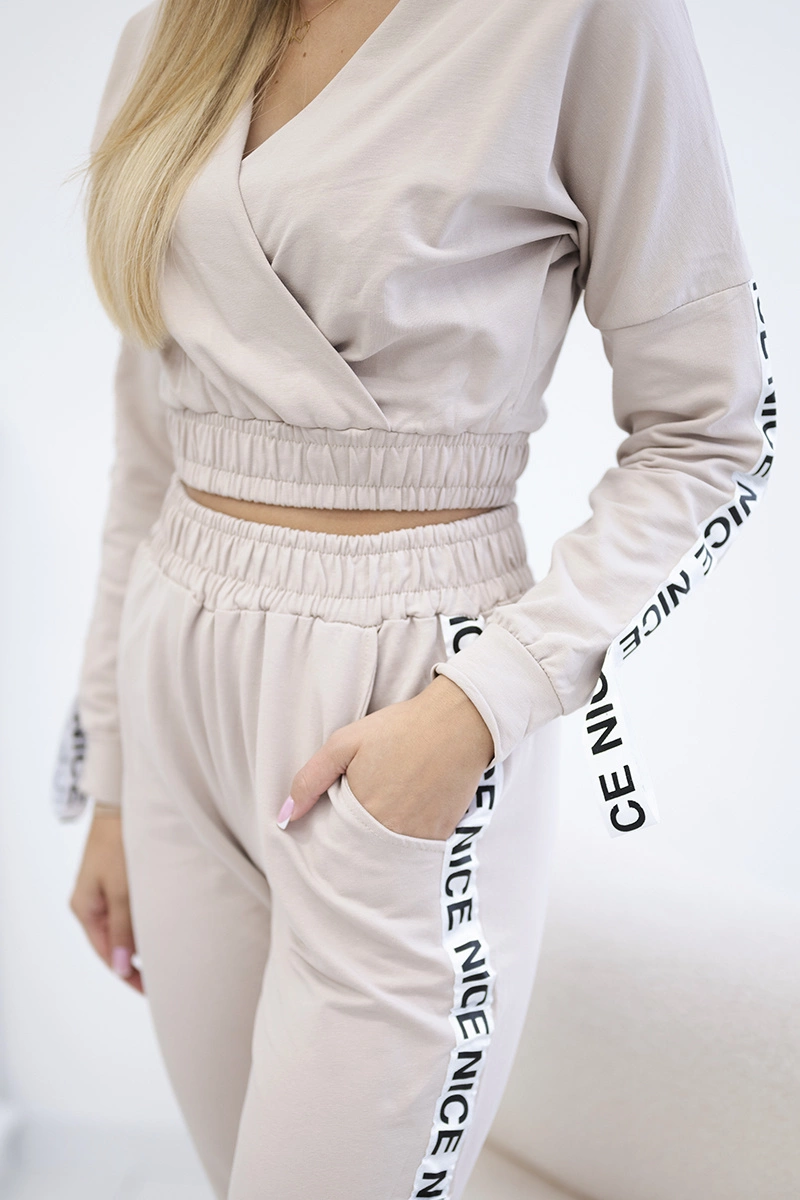 Komplet z ozdobnymi taśmami beżowy