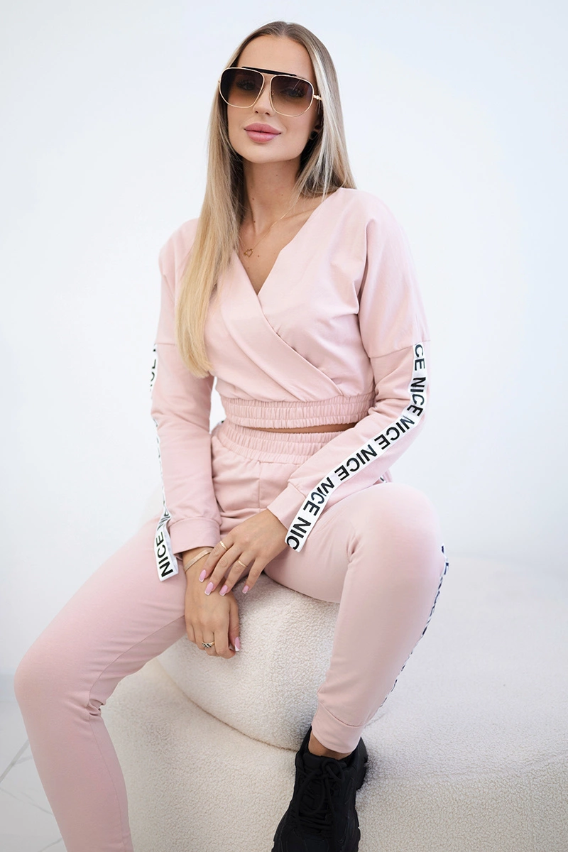 Komplet z ozdobnymi taśmami ciemno pudrowy róż