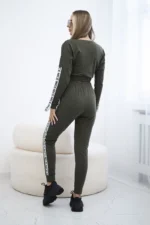 Prezentujemy Państwu komplet bluzy i spodni. Bluza oraz spodnie posiadają ozdobną taśmę z napisem. U dołu bluzy znajduje się wszyta guma. Spodnie z kieszeniami. Bardzo modny i stylowy komplet. Komplet wykonany jest z wysokiej jakości materiału. Rozmiar jest uniwersalny i będzie odpowiedni dla Pań w rozmiarze S, M lub L.