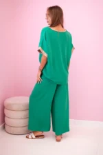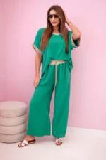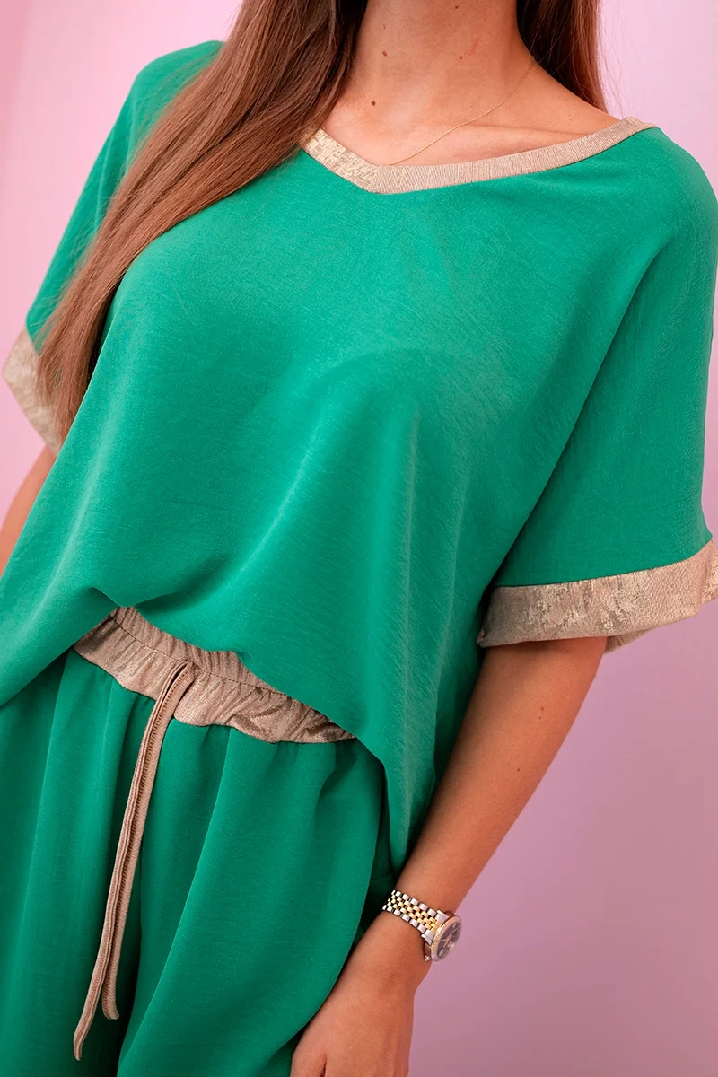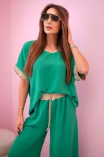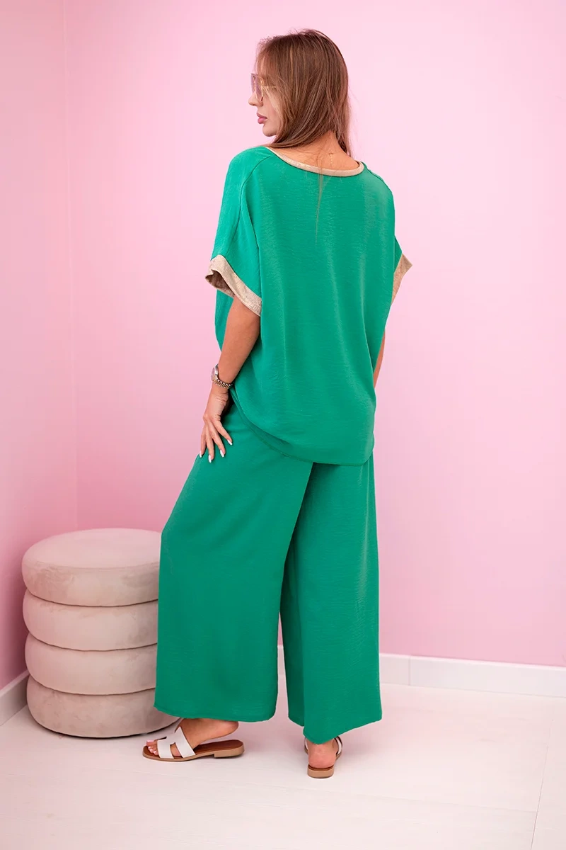 Komplet z wiskozy ze złotym obszyciem zielony