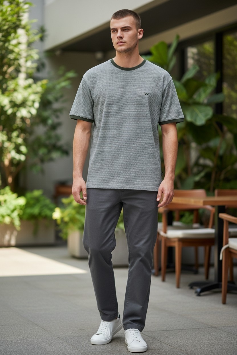 Delikatna, drobna struktura materiału nadaje koszulce nowoczesny wygląd, a kontrastowe wykończenie przy kołnierzyku i rękawkach podkreśla jej styl. Na piersi znajduje się subtelne logo marki, które dodaje całości charakteru, nie dominując minimalistycznego designu.