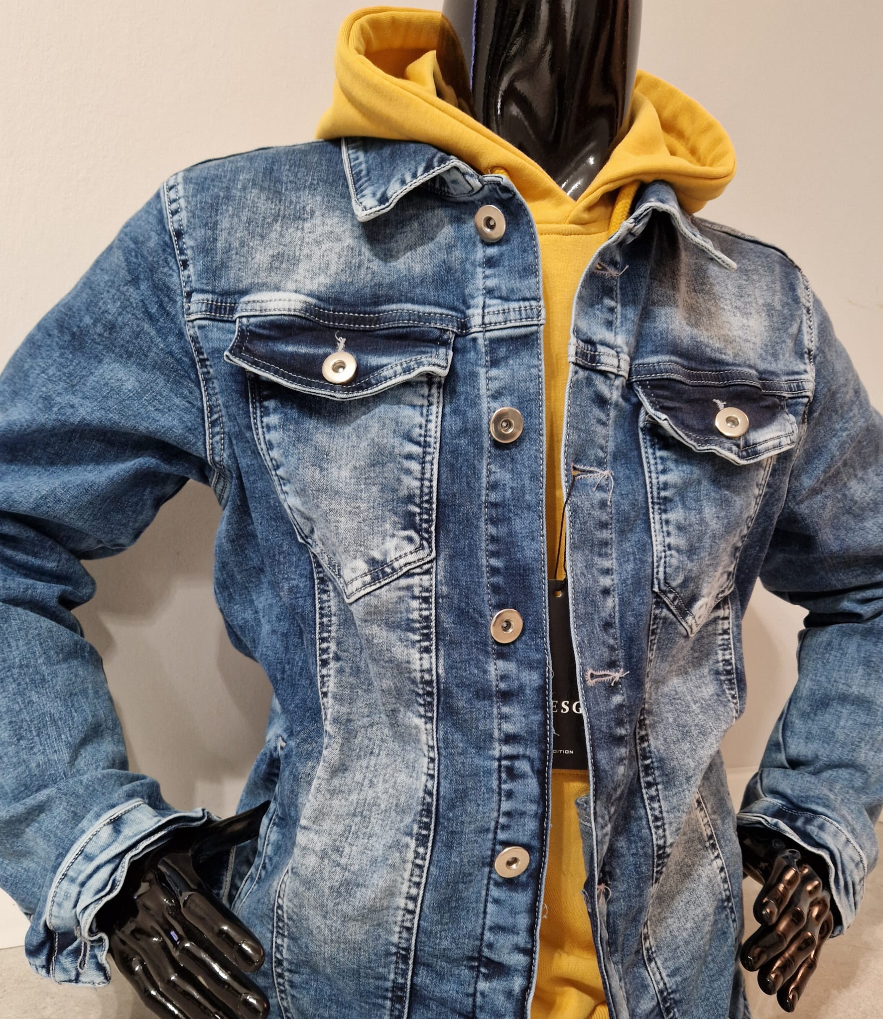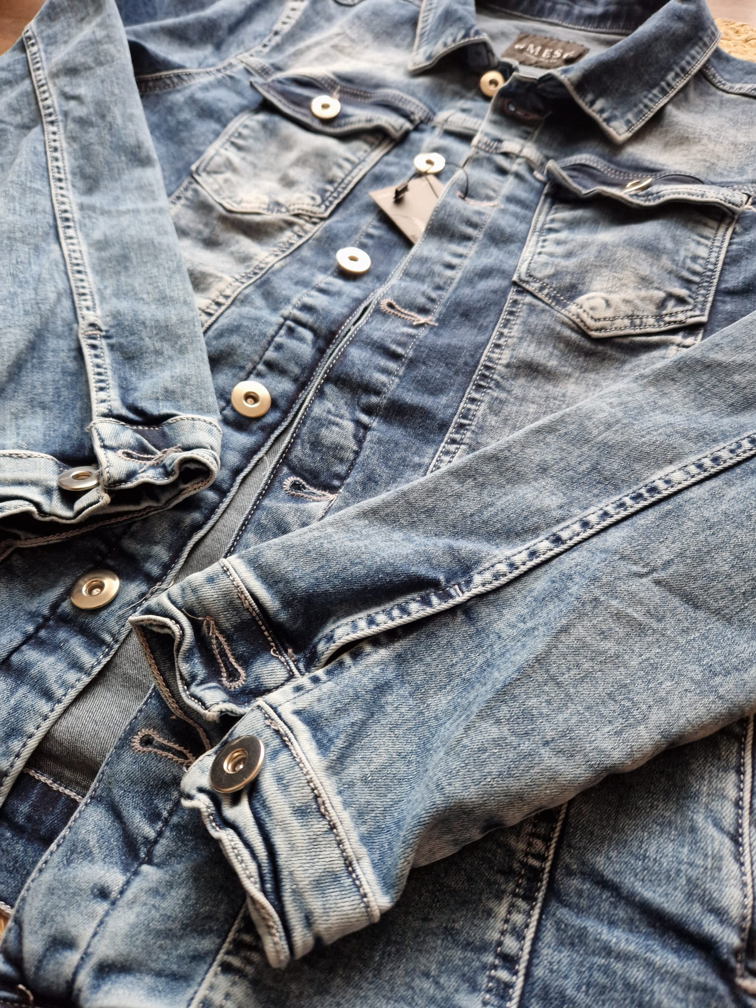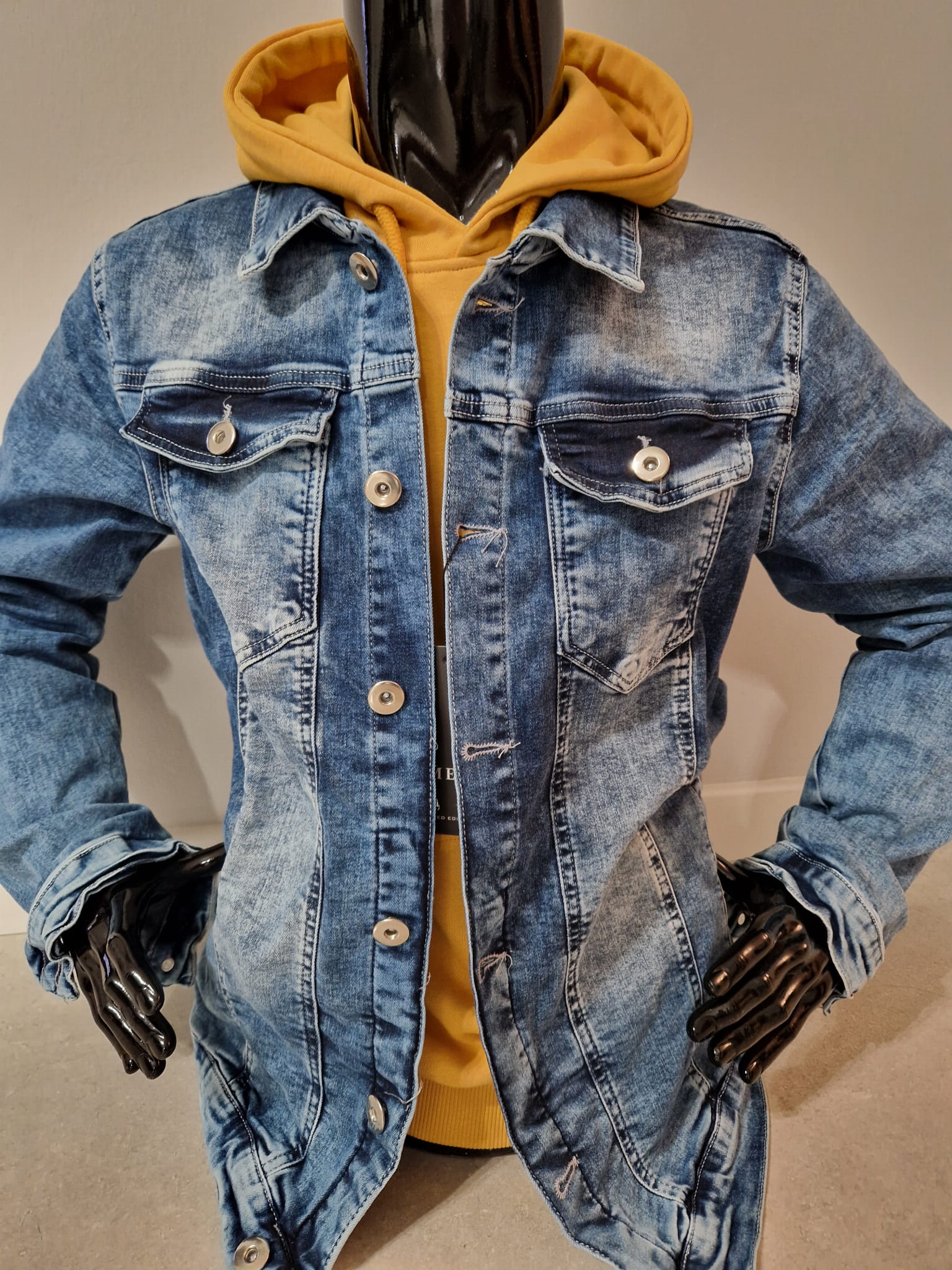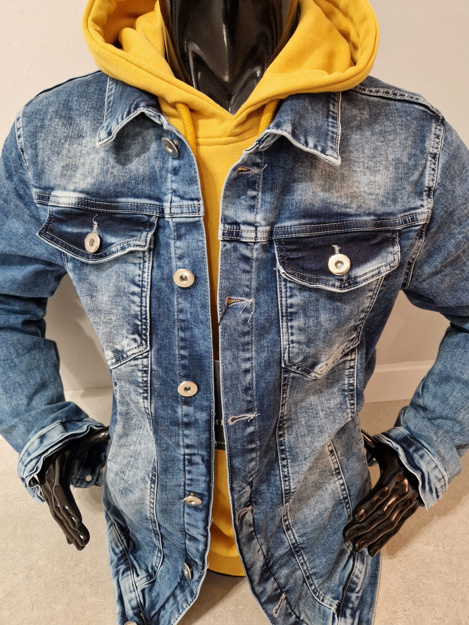 Męska kurtka jeansowa Klasyczna jeansowa kurtka zapinana na guziki, niezwykle komfortowa podczas noszenia. Posiada dwie naszywane kieszenie na piersiach oraz dwie boczne. Mankiety z guzikami umożliwiają dowolne podwijanie rękawów, a pasek z guzikami regulację szerokości dołu kurtki. Kurtka w różnych stylizacjach doskonale sprawdzi się w okresie przejściowym oraz letnie chłodniejsze poranki I wieczory. Materiał: 73,5% bawełna 25,6 poliester 0,9 elastan Rozmiary: M szerokość pod pachami 54cm, długość całkowita 68cm, długość rękawa: 67cm,L szerokość pod pachami 55cm, długość całkowita 70cm, długość rękawa:69cm,XL szerokość pod pachami 58cm, długość całkowita 71cm, długość rękawa: 69cm, XXL szerokość pod pachami 60cm, długość całkowita 72cm, długość rękawa: 71cm. 3XL szerokość pod pachami 62cm, długość całkowita 74cm, długość rękawa: 70cm.
