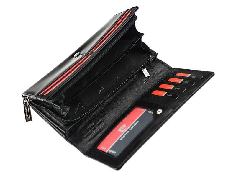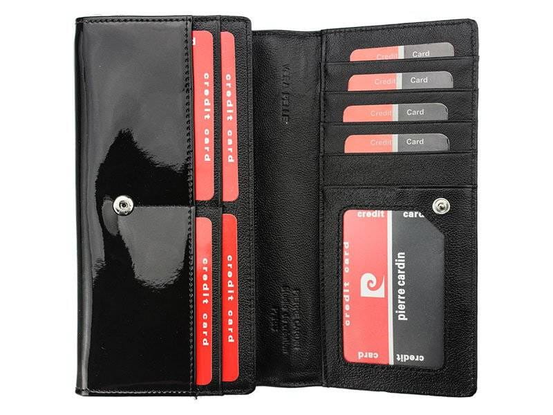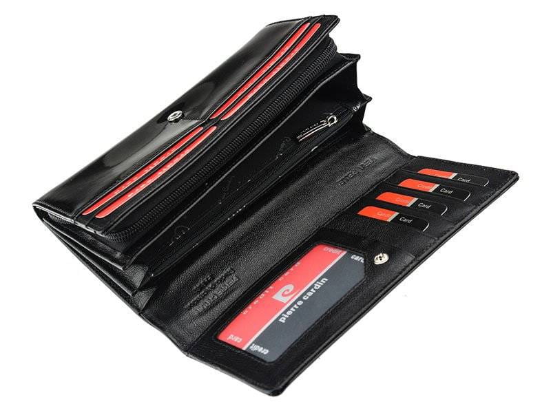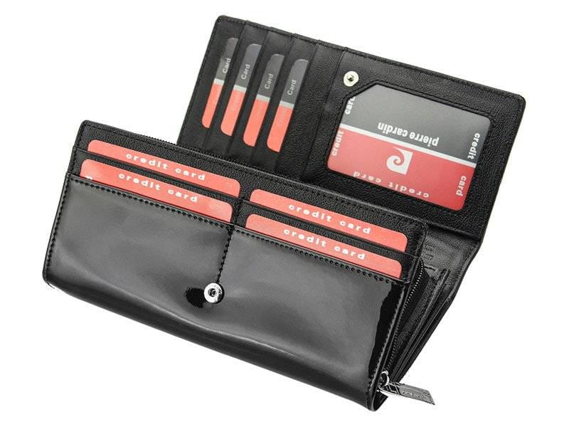 Lakierowany, poziomy portfel damski ze skóry naturalnej — Pierre Cardin