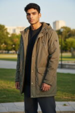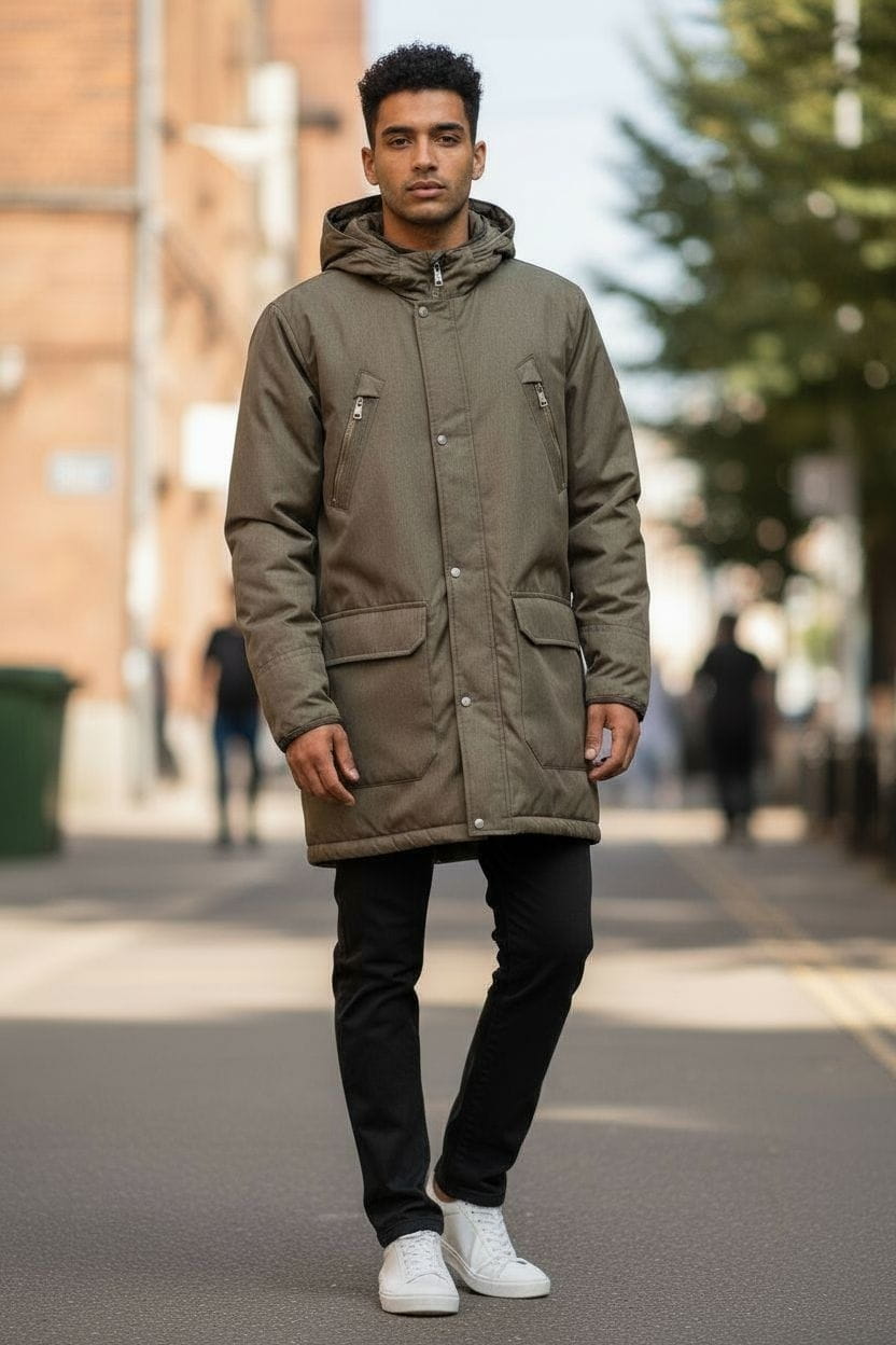 Męska zimowa kurtka przedłużana z kapturem