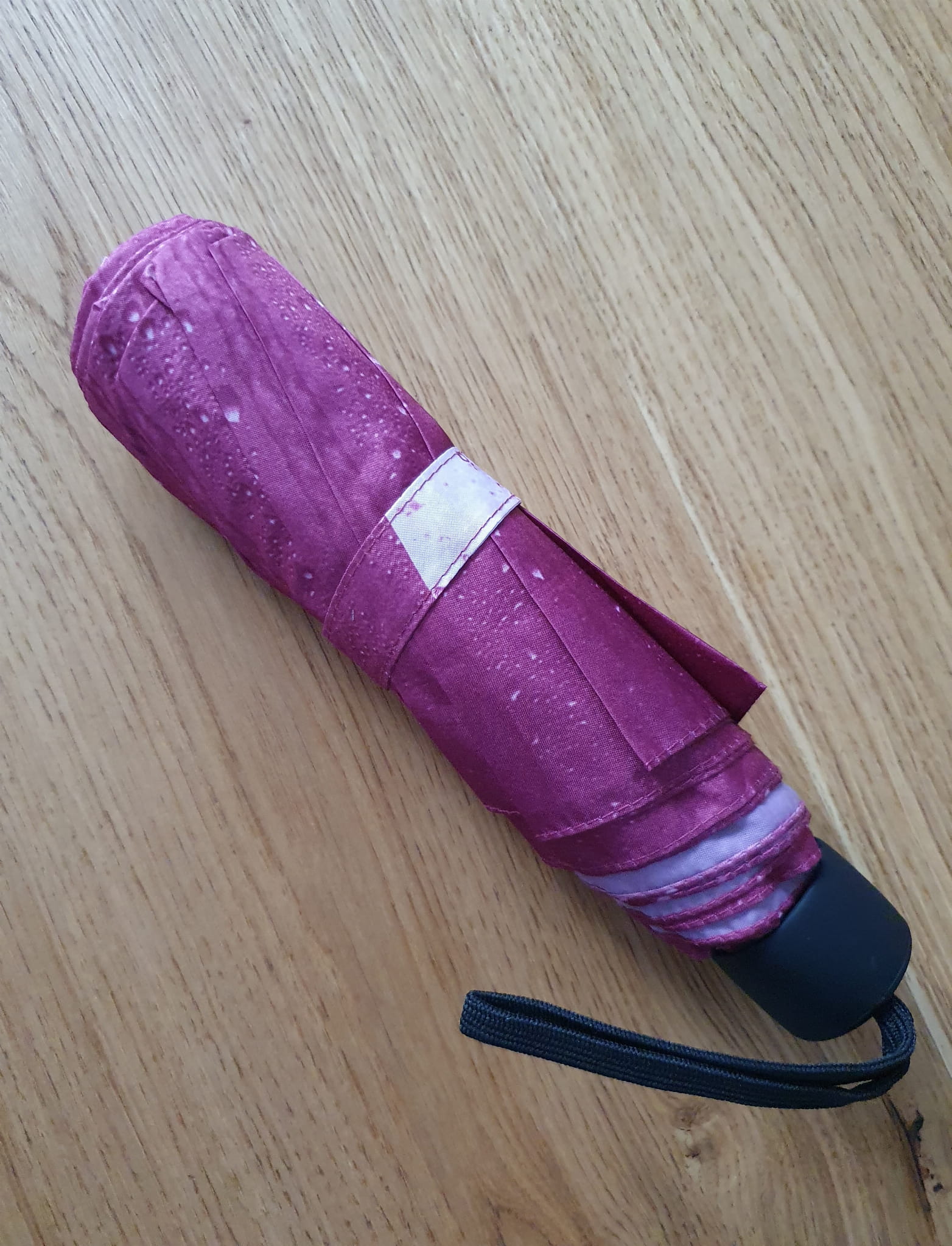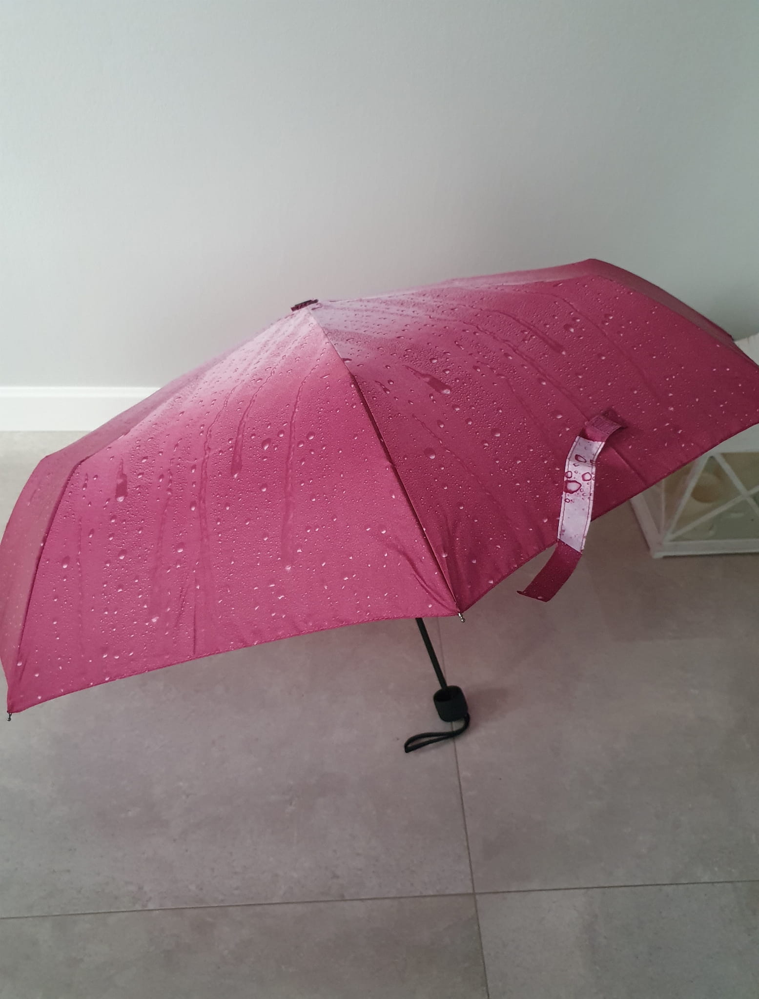 Parasolka posiada wzmocnioną włóknem szklanym konstrukcję dla większej wytrzymałości. Posiada plastikową rączkę, wygodny pasek do przenoszenia oraz pokrowiec.