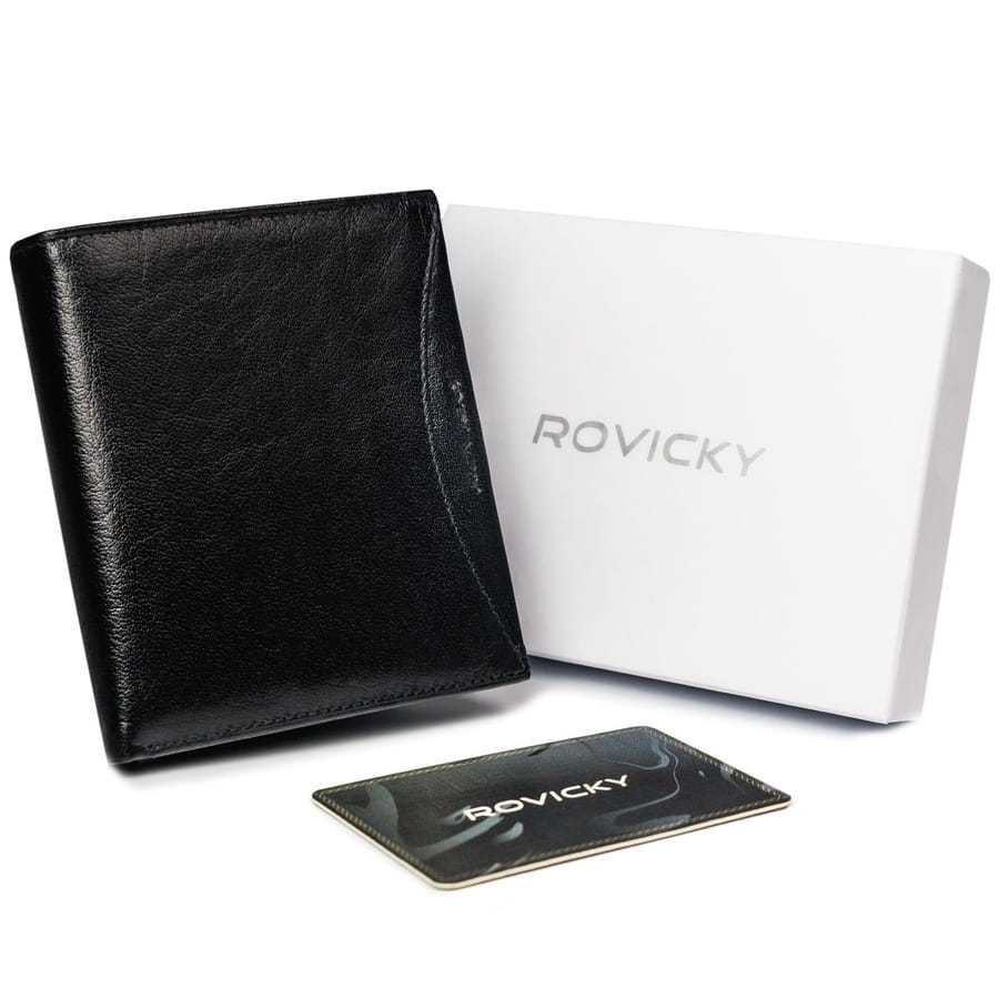 Portfel męski polskiej marki Rovicky® odszyty bardzo trwale z naturalnej skóry bydlęcej licowej, subtelnie połyskującej. Wyprawiona w tradycyjny sposób, miękka i przyjemna w dotyku. Wybierając portfel z tego materiału, masz pewność, że kupujesz produkt na lata!
