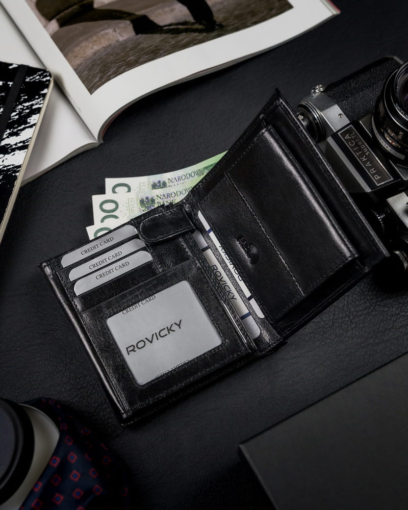 Pojemny portfel męski z naturalnej skóry licowej z ochroną RFID – Rovicky