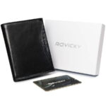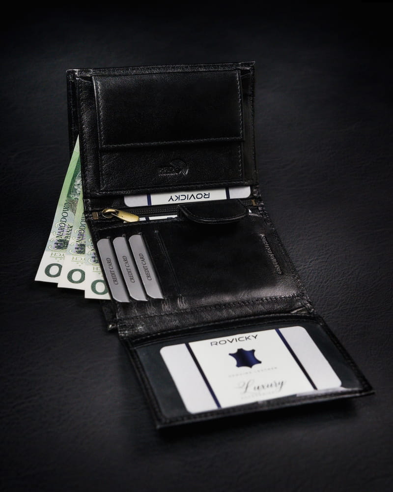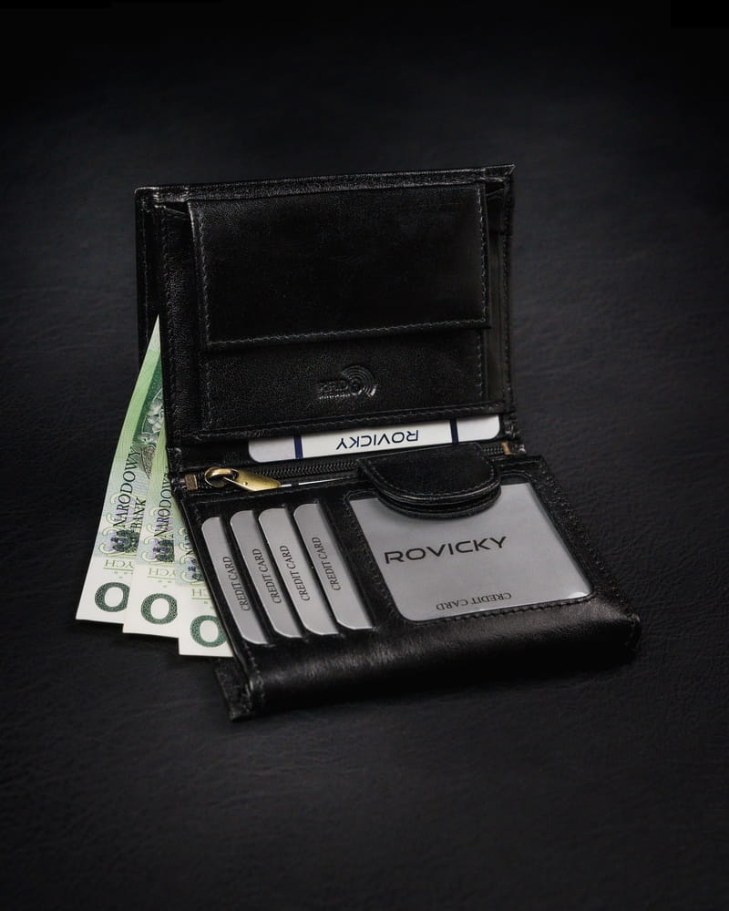 Portfel męski z naturalnej skóry licowej z przegródką na zdjęcie — Rovicky
