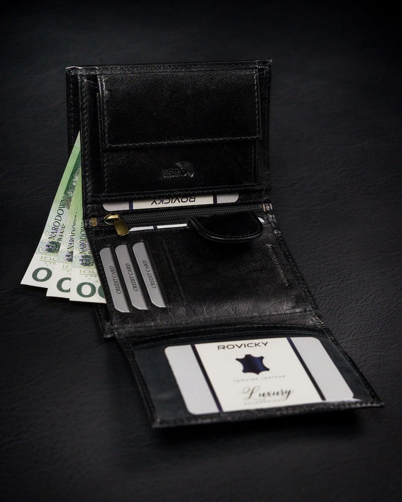 Portfel męski z naturalnej skóry licowej z przegródką na zdjęcie – Rovicky