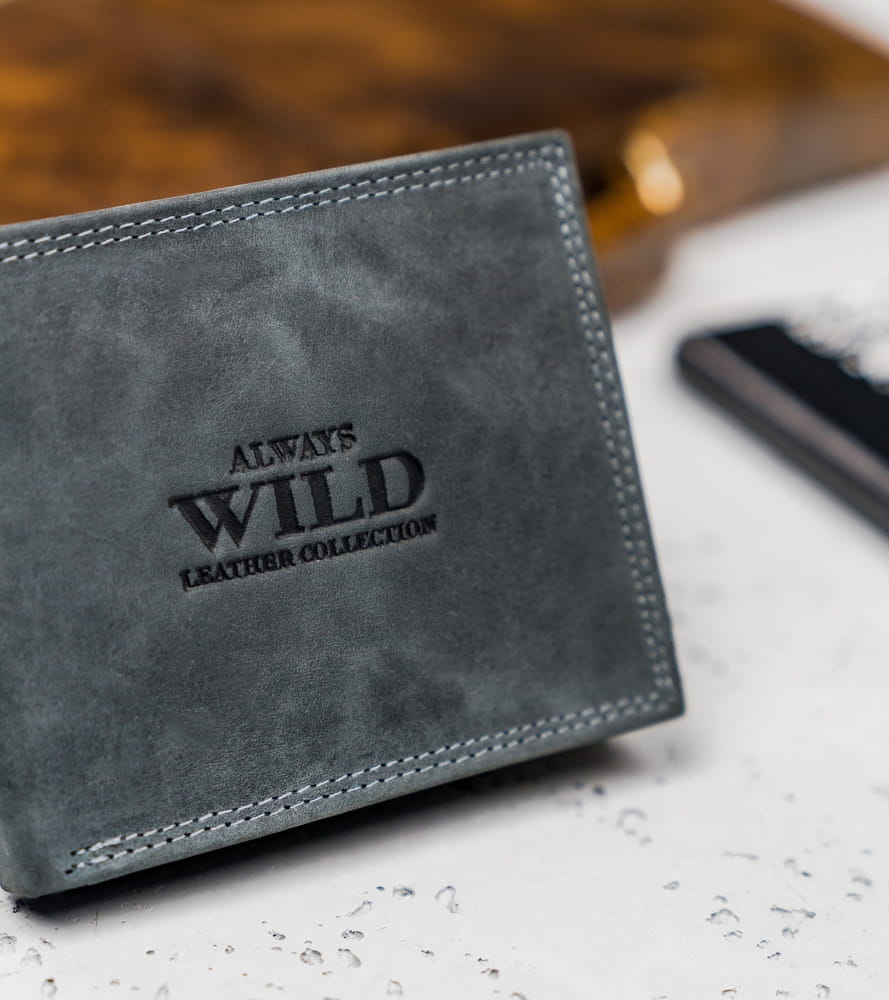 Poziomy, składany portfel męski z kieszonką zewnętrzną na kartę – Always Wild