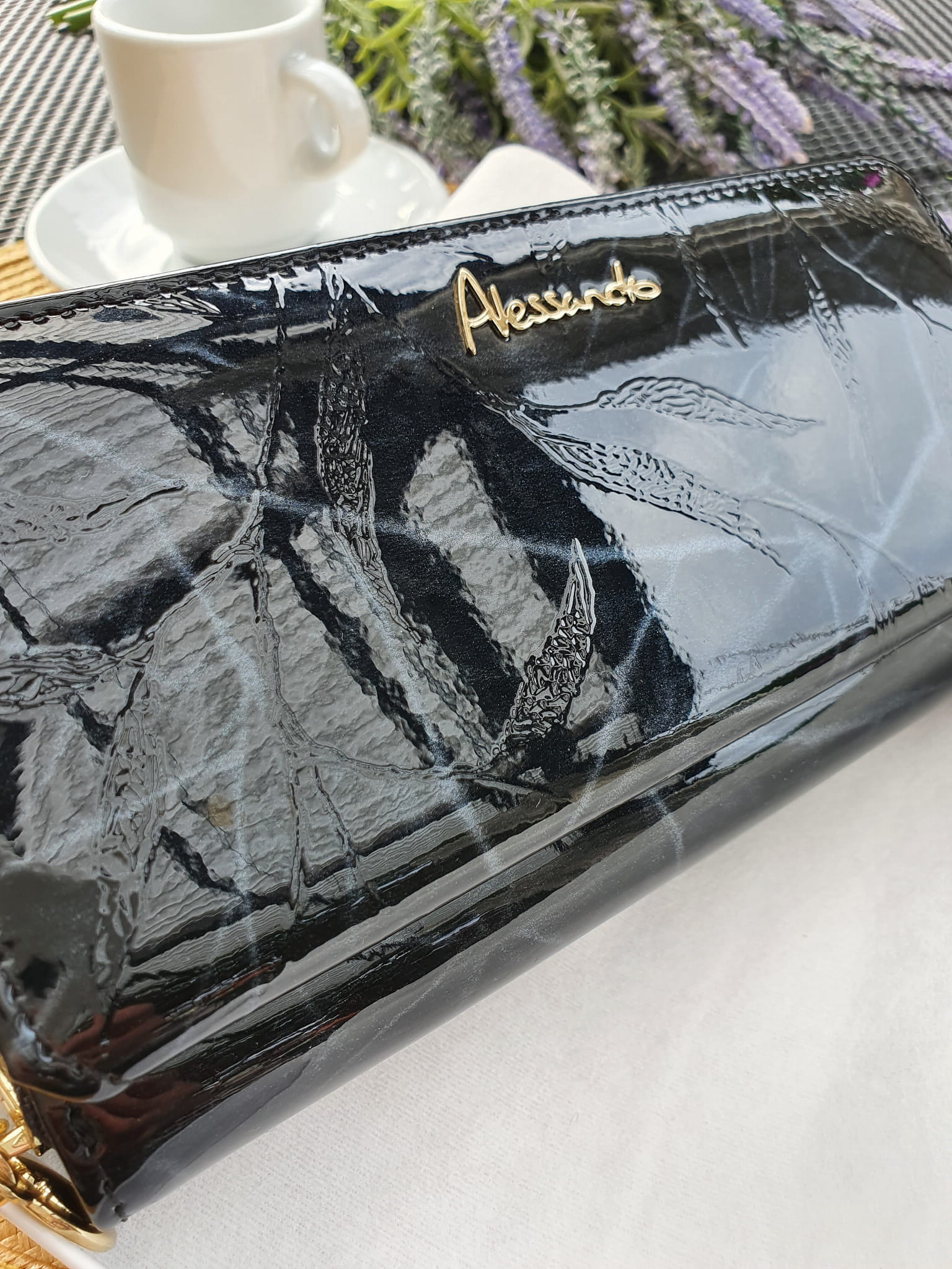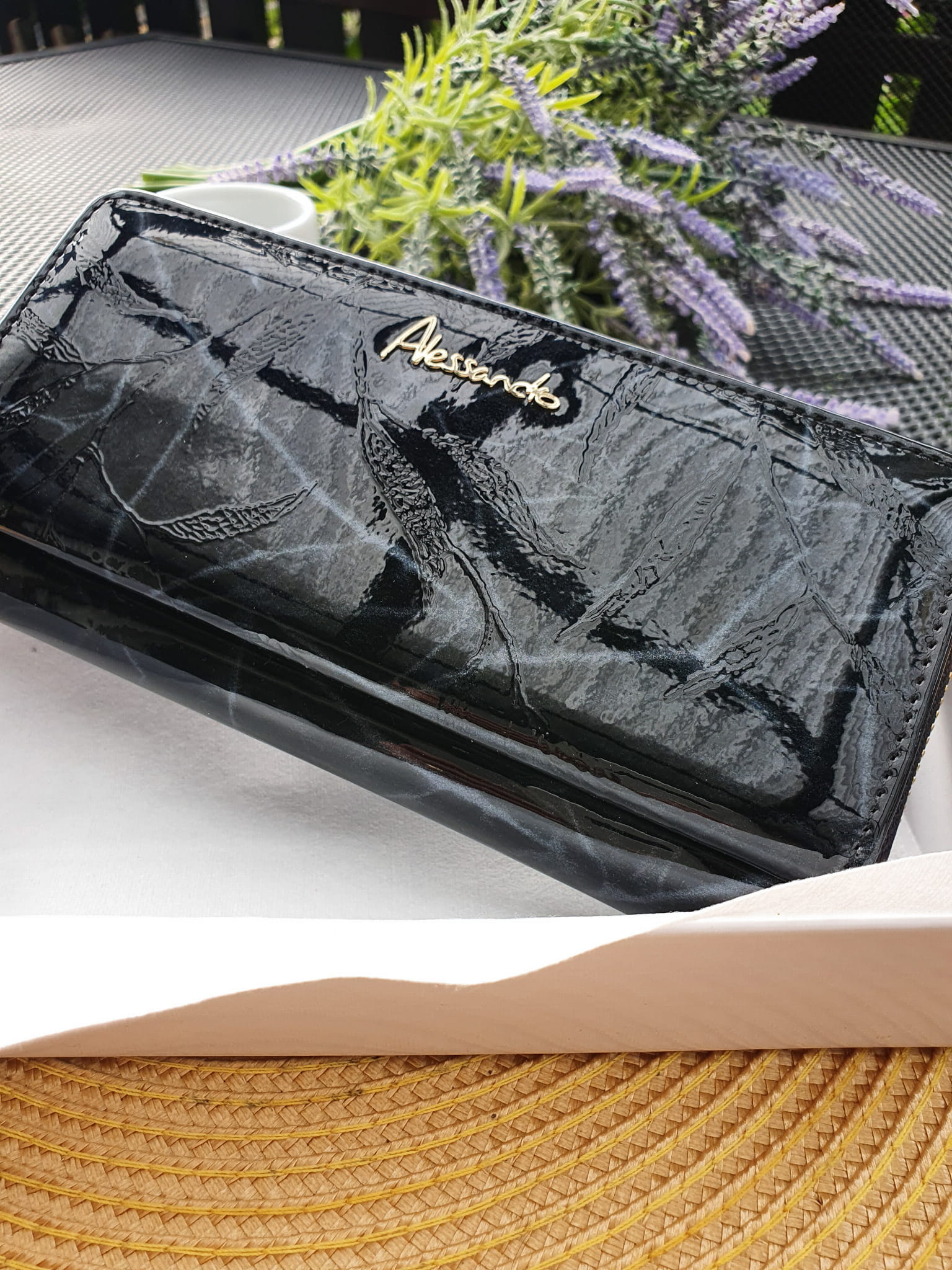 Elegancki portfel damski marki Alessandro Paoli, wykonany z najwyższej jakości skóry naturalnej lakierowanej.