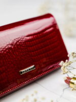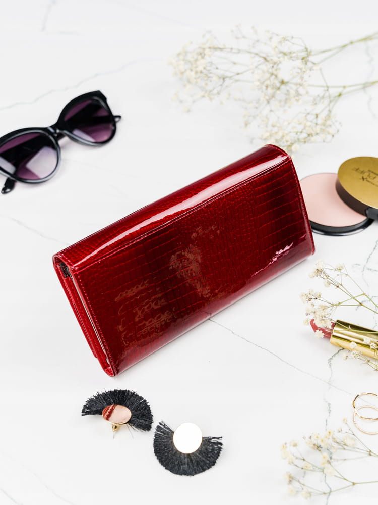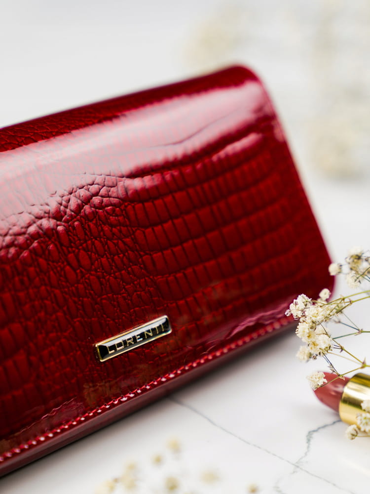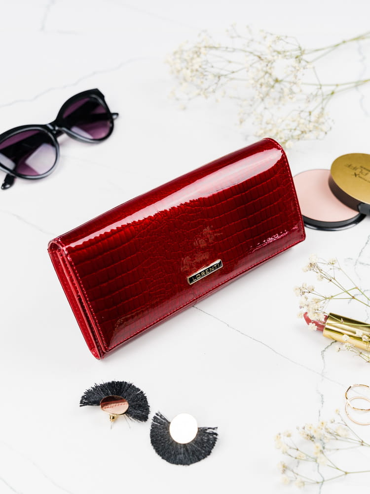 Skórzany, lakierowany portfel damski z zewnętrzną kieszonką — Lorenti