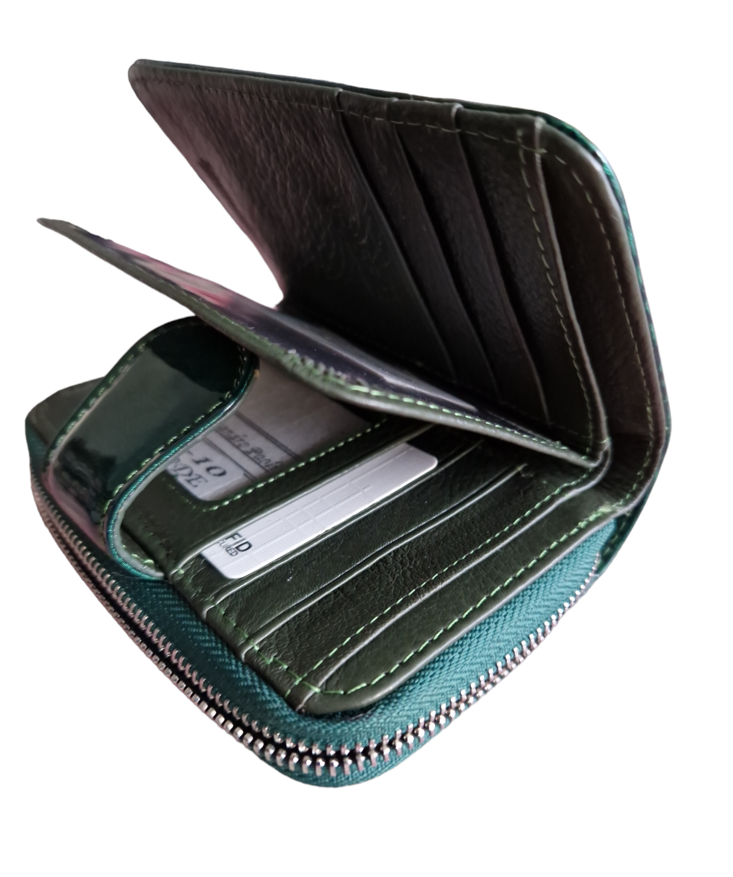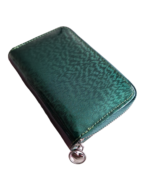Zielony kolor jest uniwersalny i pasuje do każdego stroju. Lakierowana skóra dodaje portfelowi elegancji i charakteru.