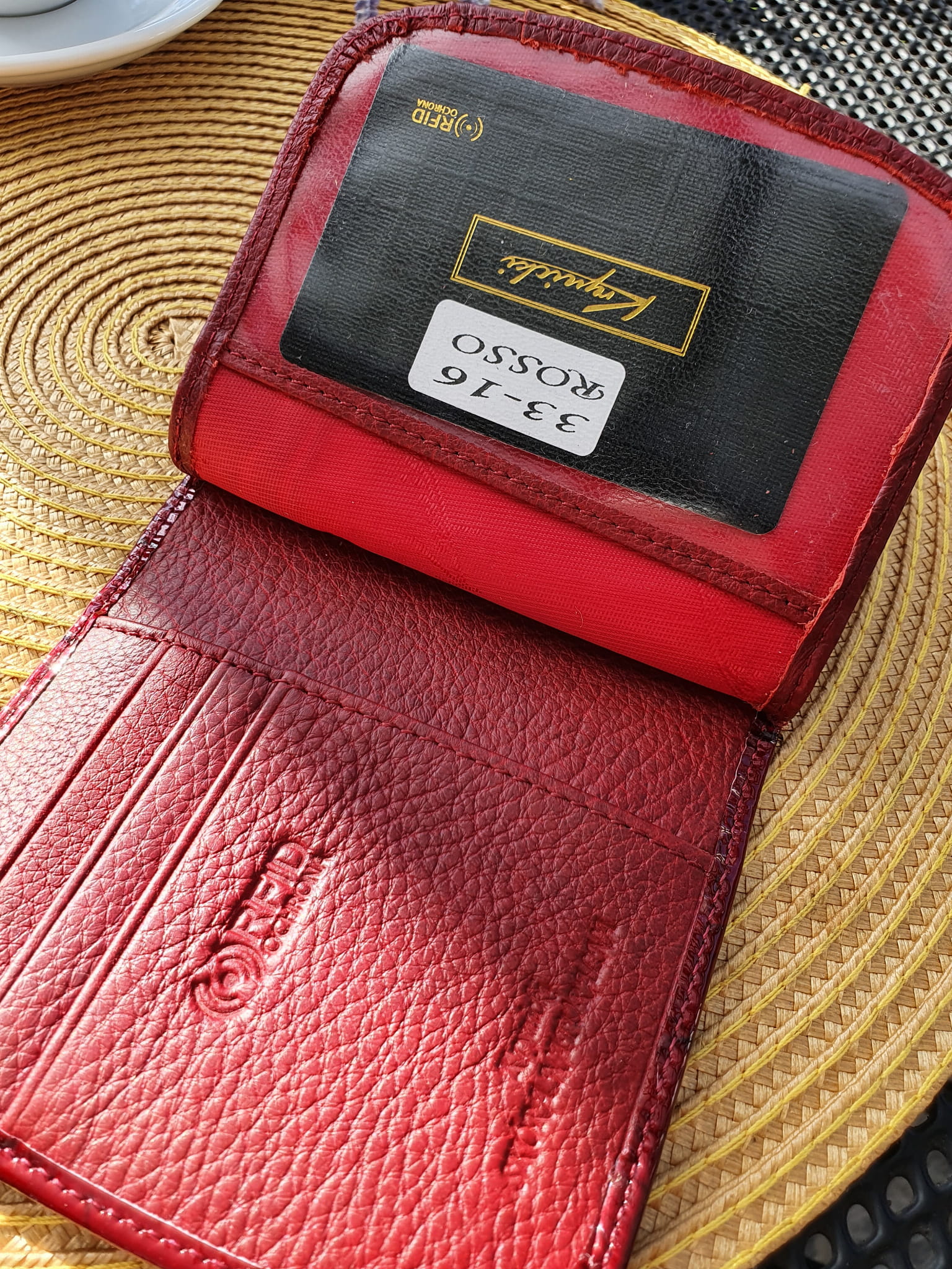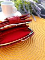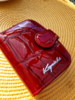 Czerwony skórzany portfel damski