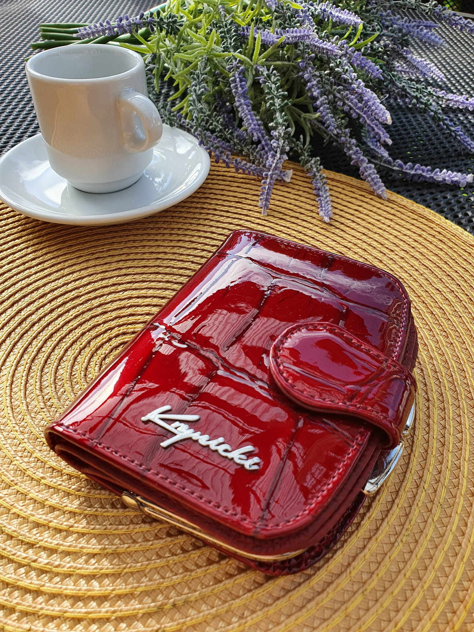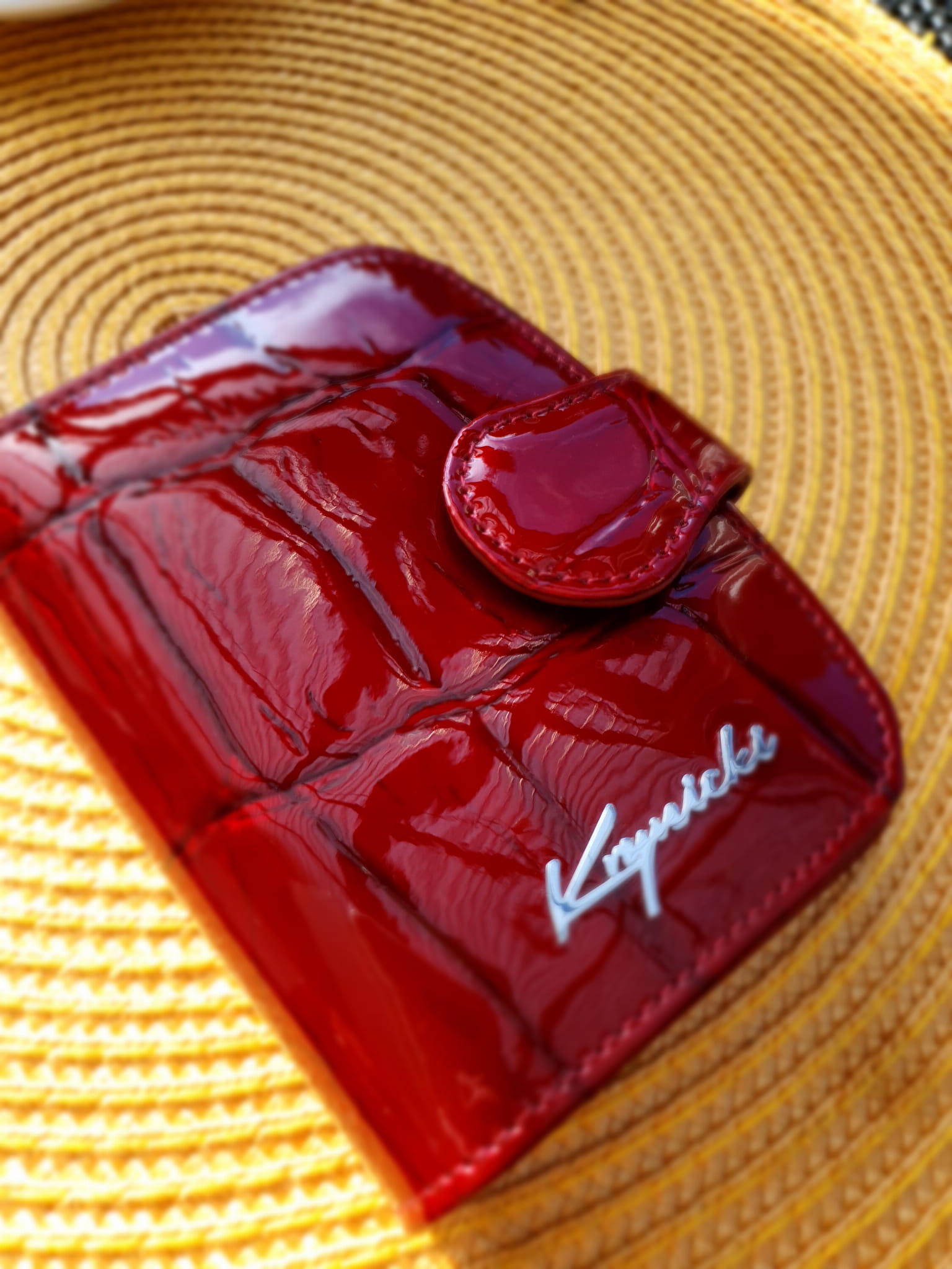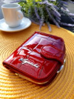 Wyjątkowy i niepowtarzalny portfel damski marki Krynicki w kolorze czerwonym wykonany ze skóry naturalnej lakierowanej Portfel wyposażony w bardzo dużą liczbę miejsc na karty kredytowe, dokumenty oraz bilon. Zostanie dostarczony w eleganckim pudełku producenta.
